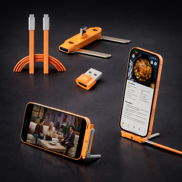 Este soporte con cargador Tipo C de 240W no solo carga tu dispositivo, lo convierte en una estación completa para tu día a día.