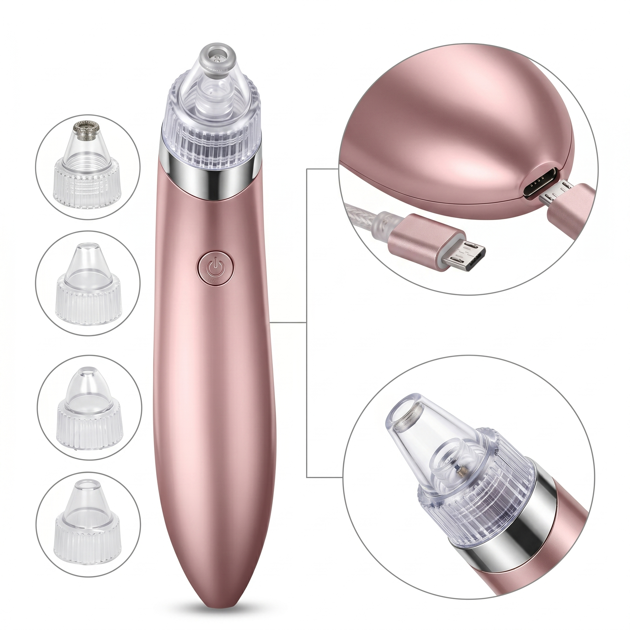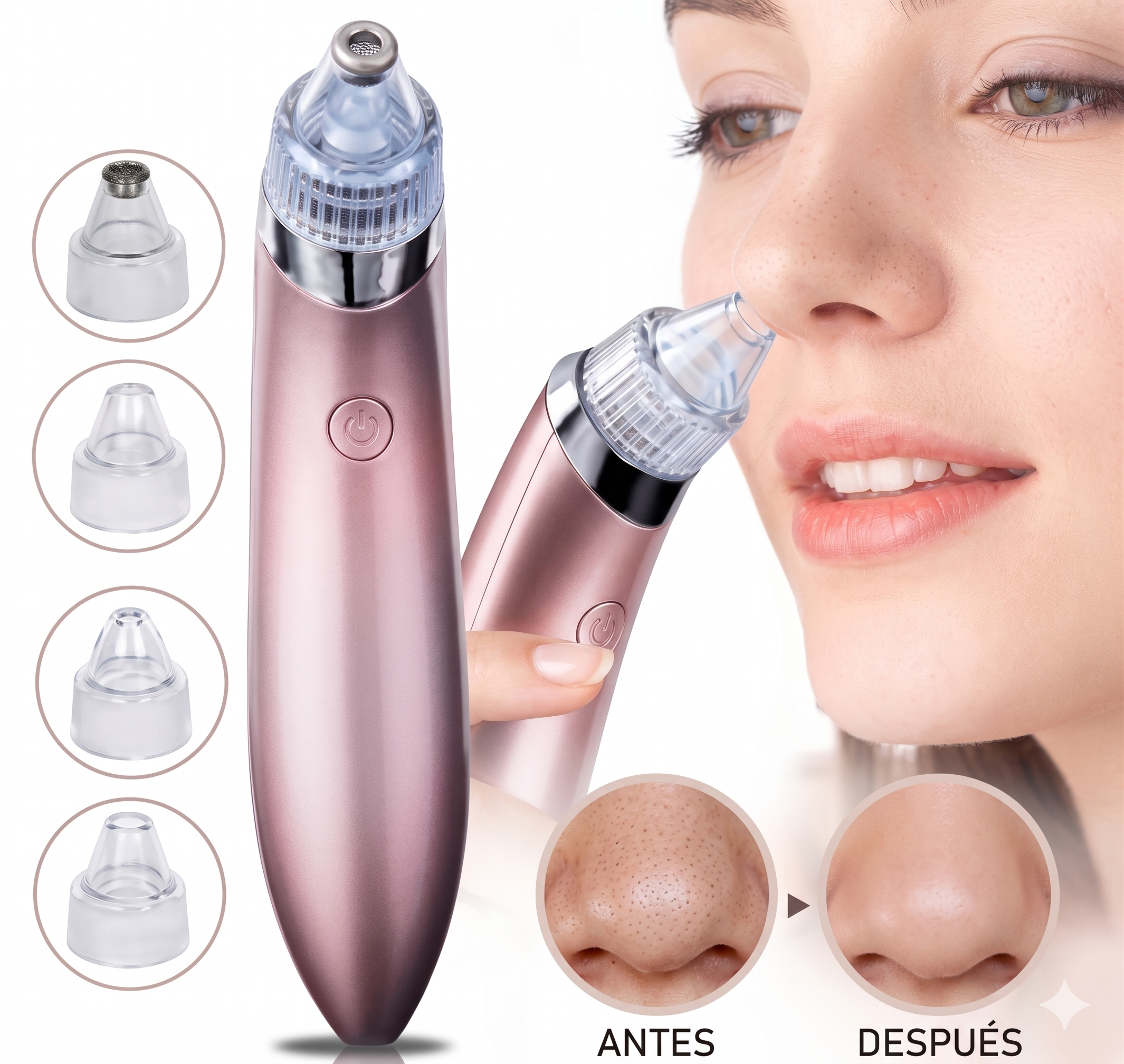 Este dispositivo de succión ayuda a remover puntos negros, grasa e impurezas acumuladas en los poros, dejando la piel con un aspecto más limpio y cuidado.