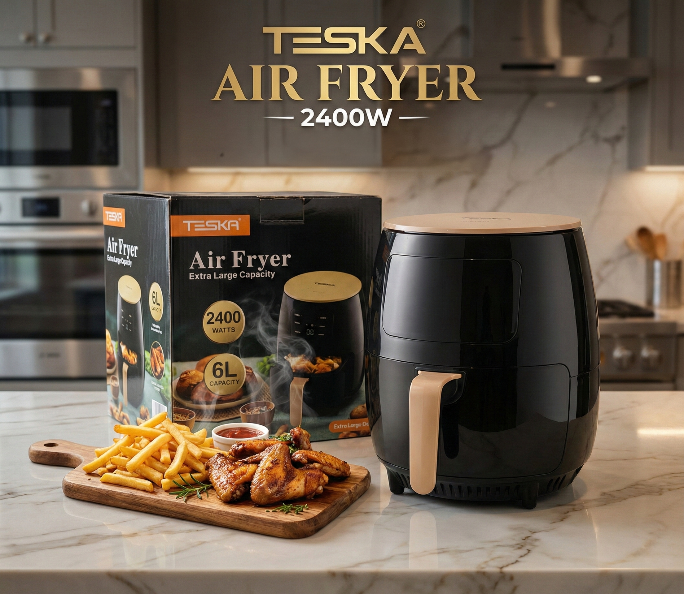 Disfruta comidas crujientes por fuera y suaves por dentro con esta freidora de aire de 6 litros, ideal para preparar alimentos para toda la familia. Su tecnología de circulación de aire caliente permite cocinar sin aceite o con una cantidad mínima, logrando resultados más saludables sin sacrificar sabor.