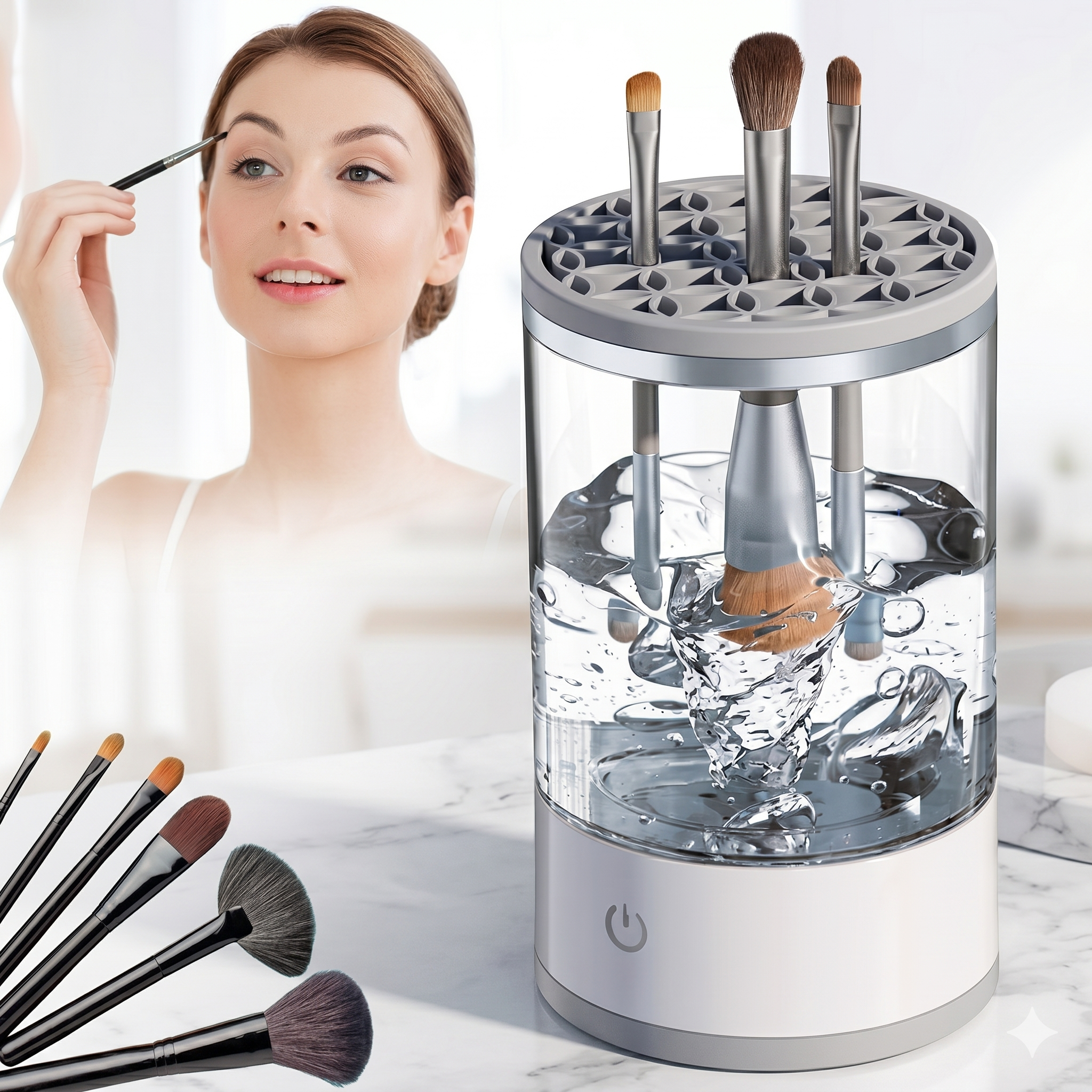 Limpia tus brochas de maquillaje de forma rápida y profunda con este dispositivo que elimina residuos, grasa y bacterias sin necesidad de frotar manualmente.