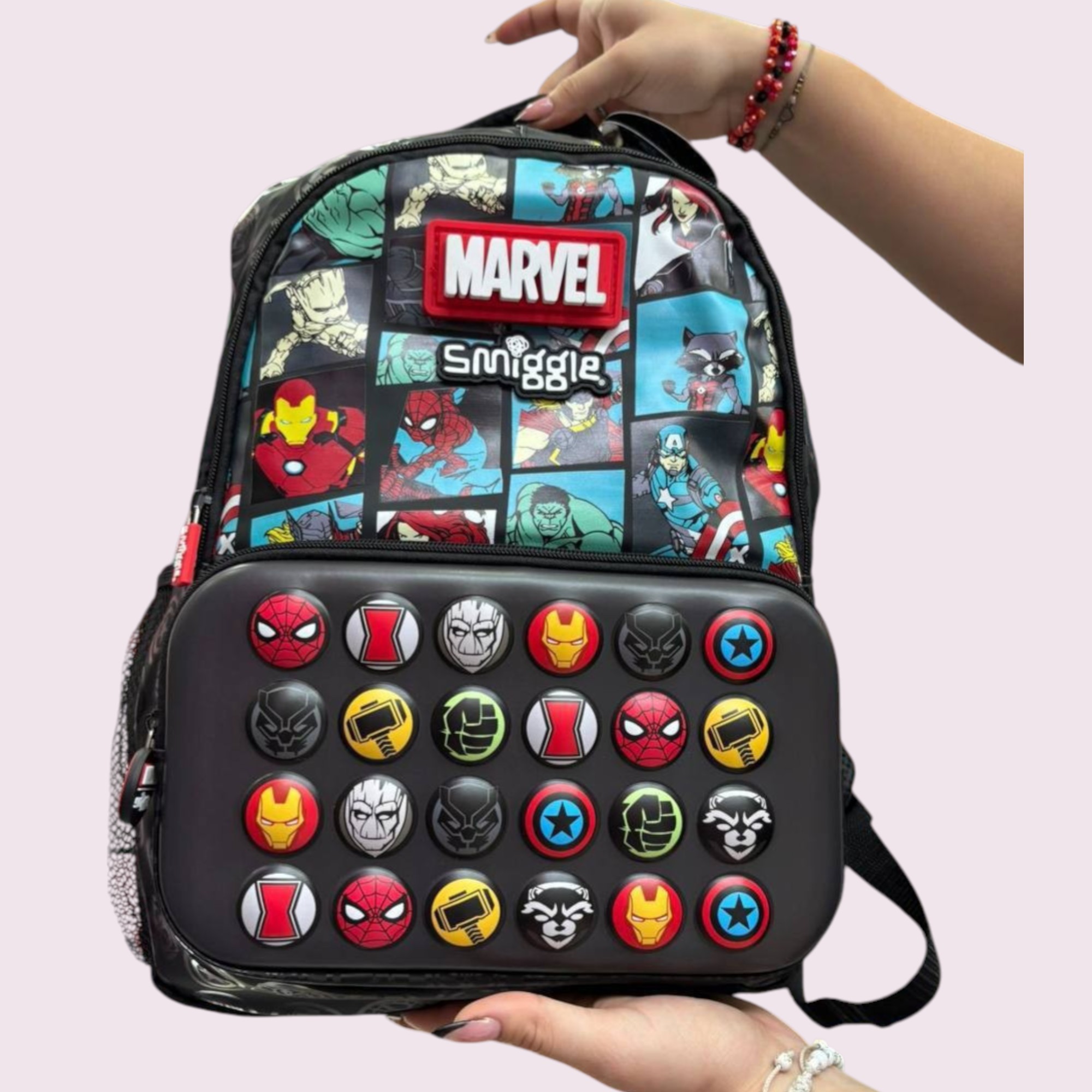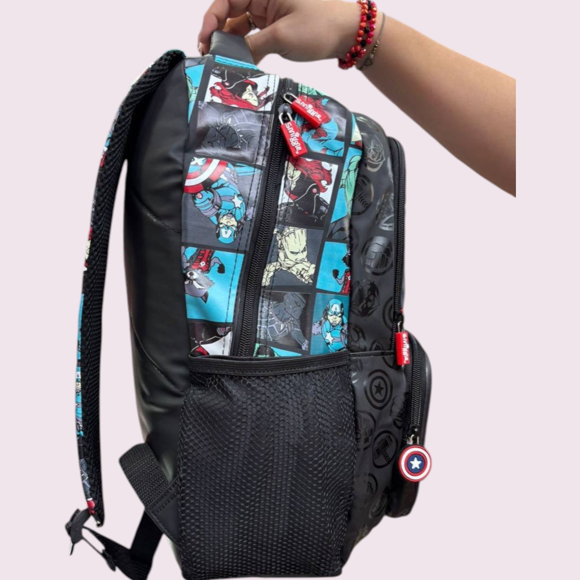 Con esta mochila grande diseño de superhéroes llevas contigo todo lo que necesitas con un diseño que destaca y representa lo que te gusta.