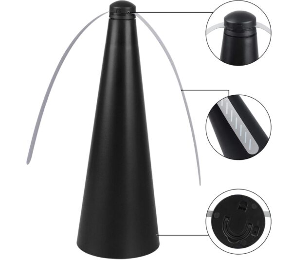 Mantén moscas, abejas y avispas lejos de tus alimentos con este ventilador repelente para mesa. Sus aspas giratorias con efecto reflectante crean una barrera visual que ayuda a disuadir a los insectos sin necesidad de químicos, zaps eléctricos ni olores desagradables.